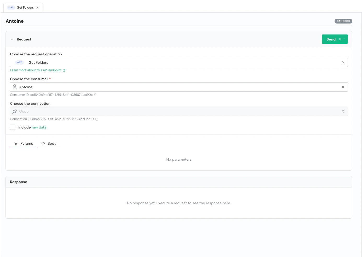 - Raw data toggle — Include raw connector response data alongside the unified response (GET endpoints only).