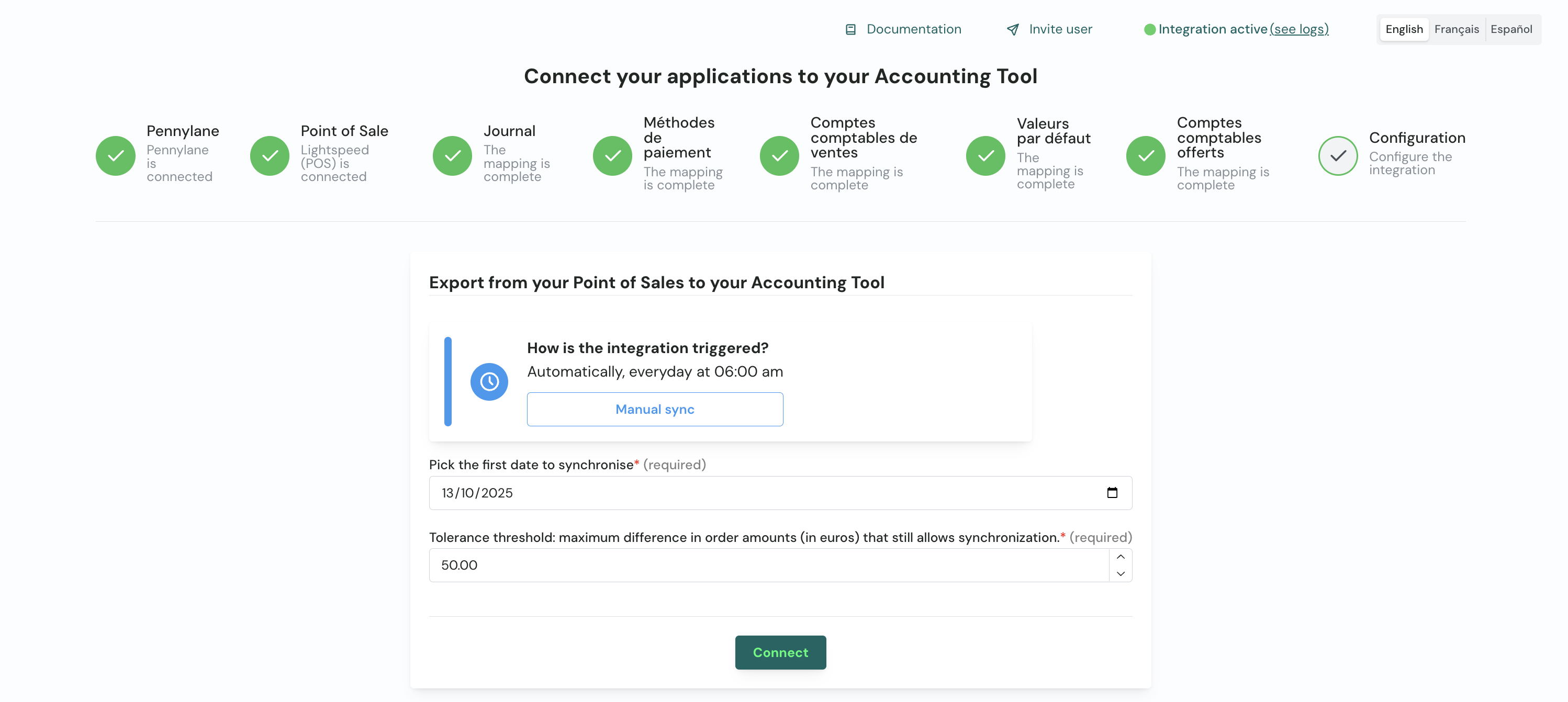 If your client is not able to connect to its POS or Accounting tool, please take a look to our connector documentation page.
